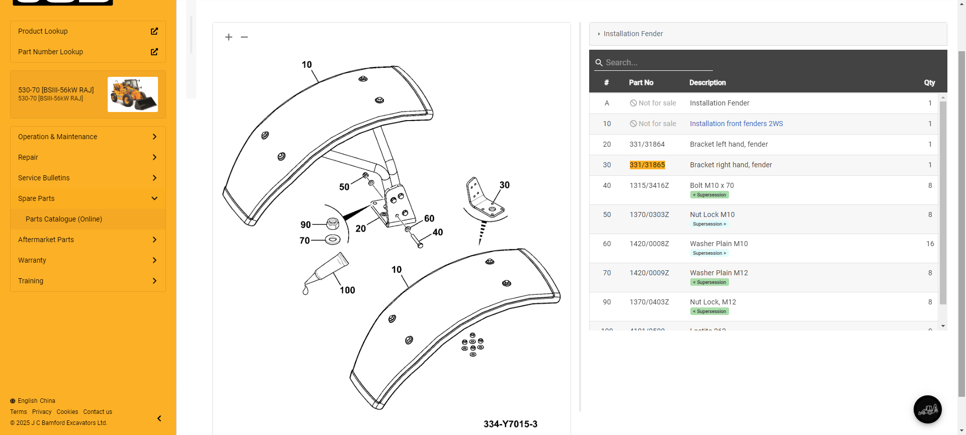JCB Spare Parts Bracket 331/31865